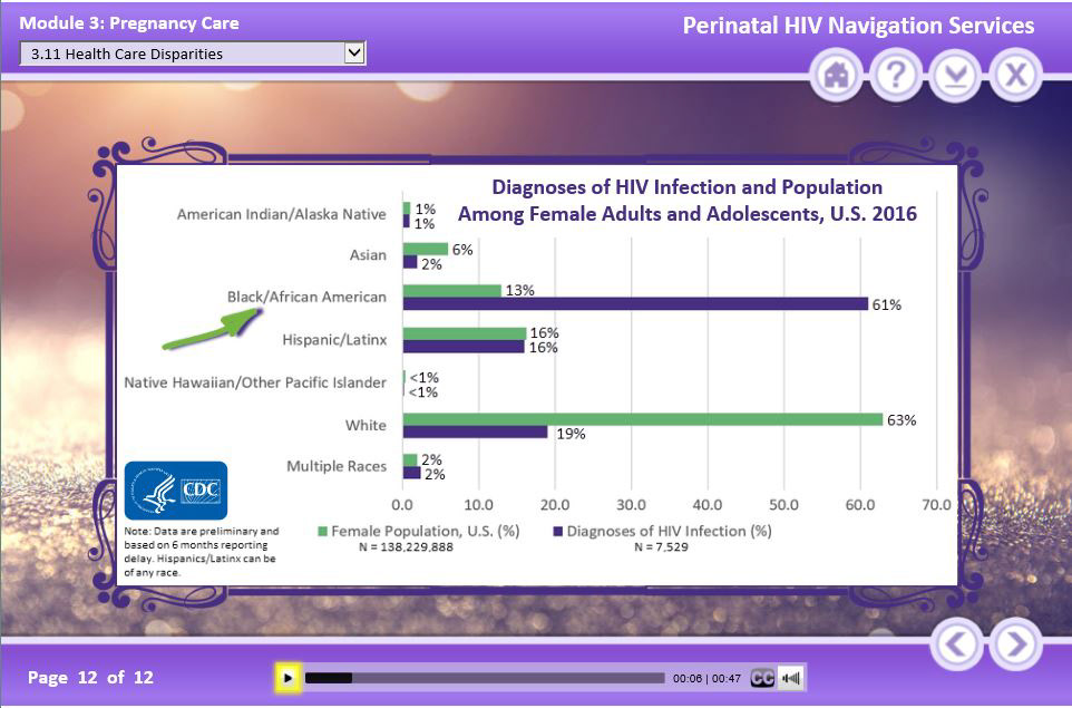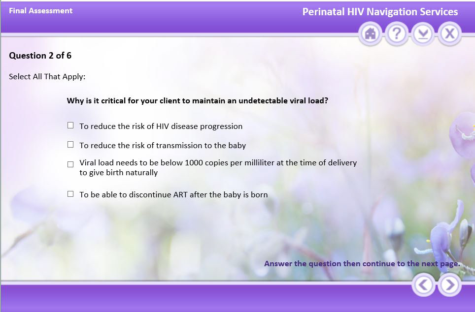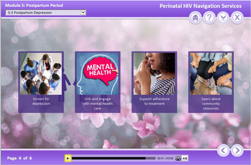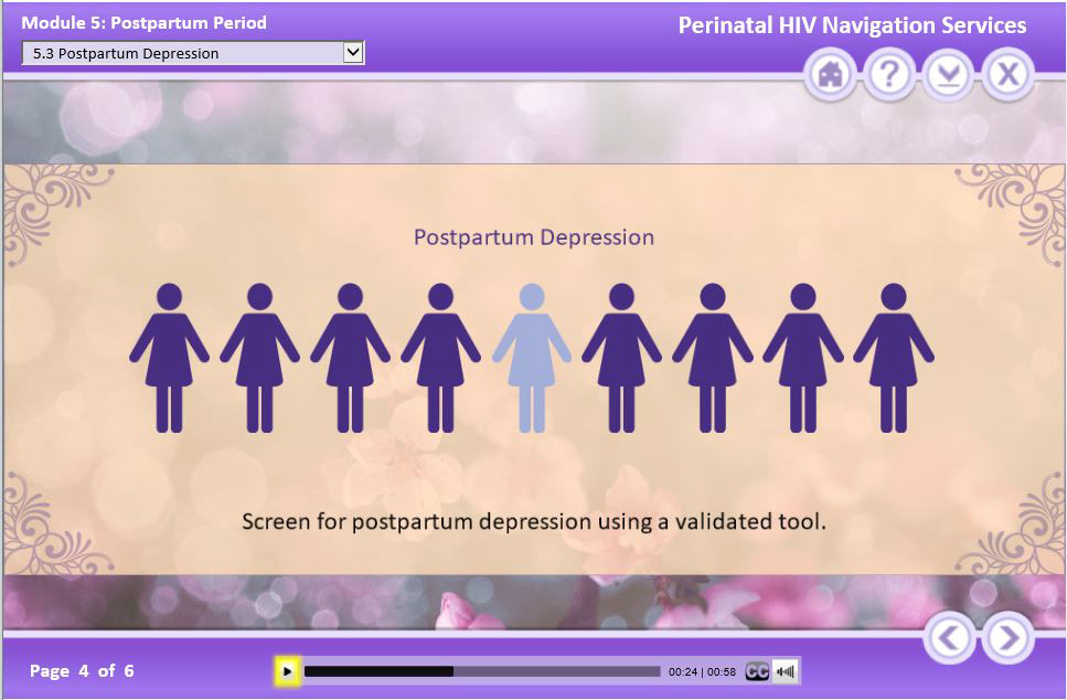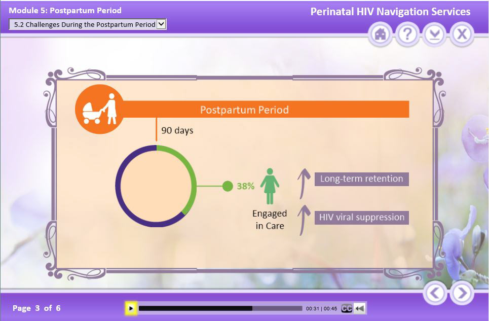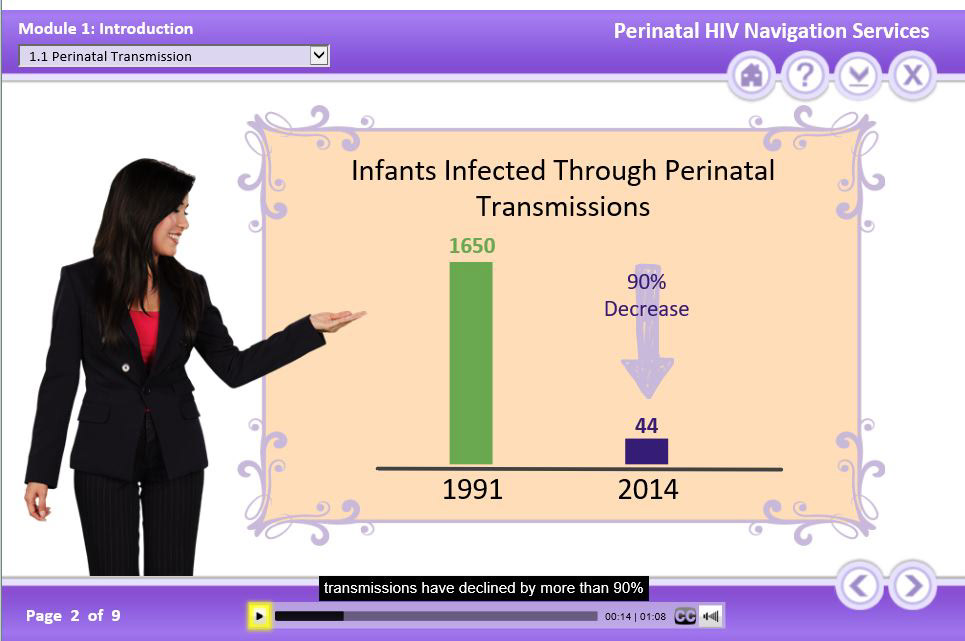 This course follows the story of Beatrice, a woman who finds out she has HIV when she is 8 weeks pregnant, and her HIV navigator, Claire. The course features 6 short video interactions between Beatrice and Claire.