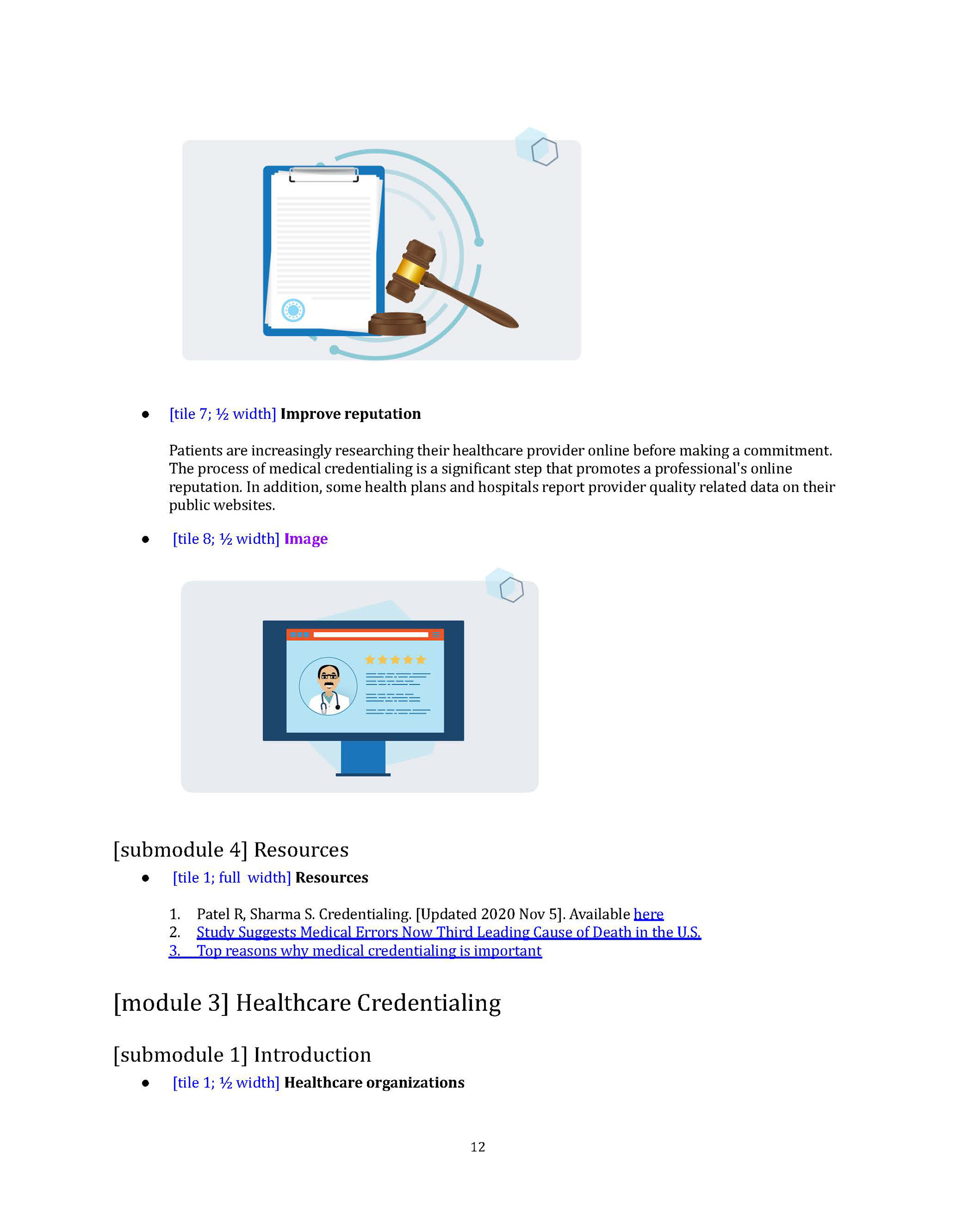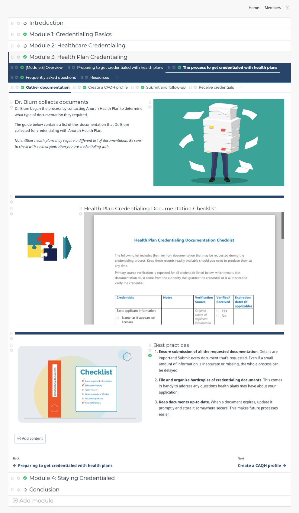 Ten public health courses, designed to assist small medical practices in every aspect of their business, were created in collaboration with Primary Care Development Corporation (PCDC). These courses were kept coherent by a common cast of avatars, as well as consistent storylines. In the making of these courses, I honed my SME skills through building relationships with varied experts, both inside and outside the organization.
